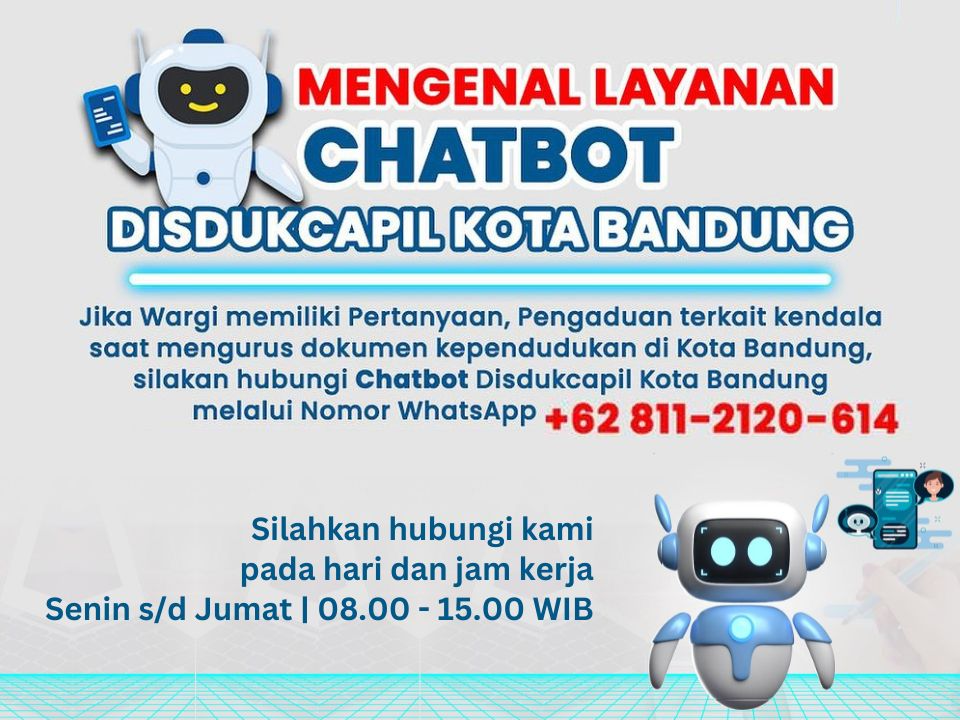 Jika Wargi memiliki pertanyaan, pengaduan terkait kendala saat mengurus dokumen kependudukan di Kota ruteng, silakan hubungi Chatbot Disdukcapil Kota ruteng melalui Nomor Whatsapp +62 811-2120-614 Silahkan Hubungi Kami selama hari dan Jam kerja (Senin-Jumat 08.00 - 15.00 WIB)